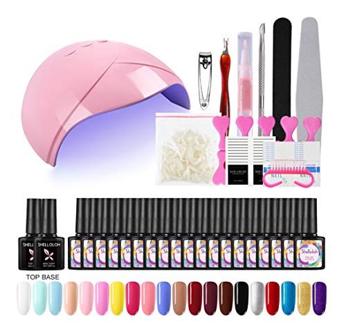 Shelloloh 36W Låmpara LED/UV Secador de Uñas Nail Dryer 20PCS Esmalte Semipermanente Soak off 10ml Primer Uñas Base Coat Kit para Manicura PedicuraGel Cleaner 100ml - Eliminar la capa pegajosa de geles UV y
