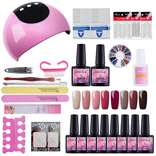 Coscelia 8 Colores Esmalte Semipermanente para UƱas 8ml Secador de UƱas 36W UV/LED Curado Esmalte Gel con Temporizador Base Top Gel para Manicura KitSaint-Acior Kit UƱas de Gel Esmalte Semipermanente de Color